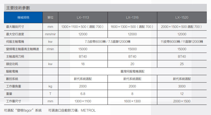 | 伺服主軸電機 Servo spindle motor | kw | 7.5 belt 8000 rpm /7.5 direct 12000 rpm |